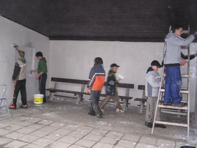 Akce "Den Země" 22.4.2008 Bílení autobusové čekárny